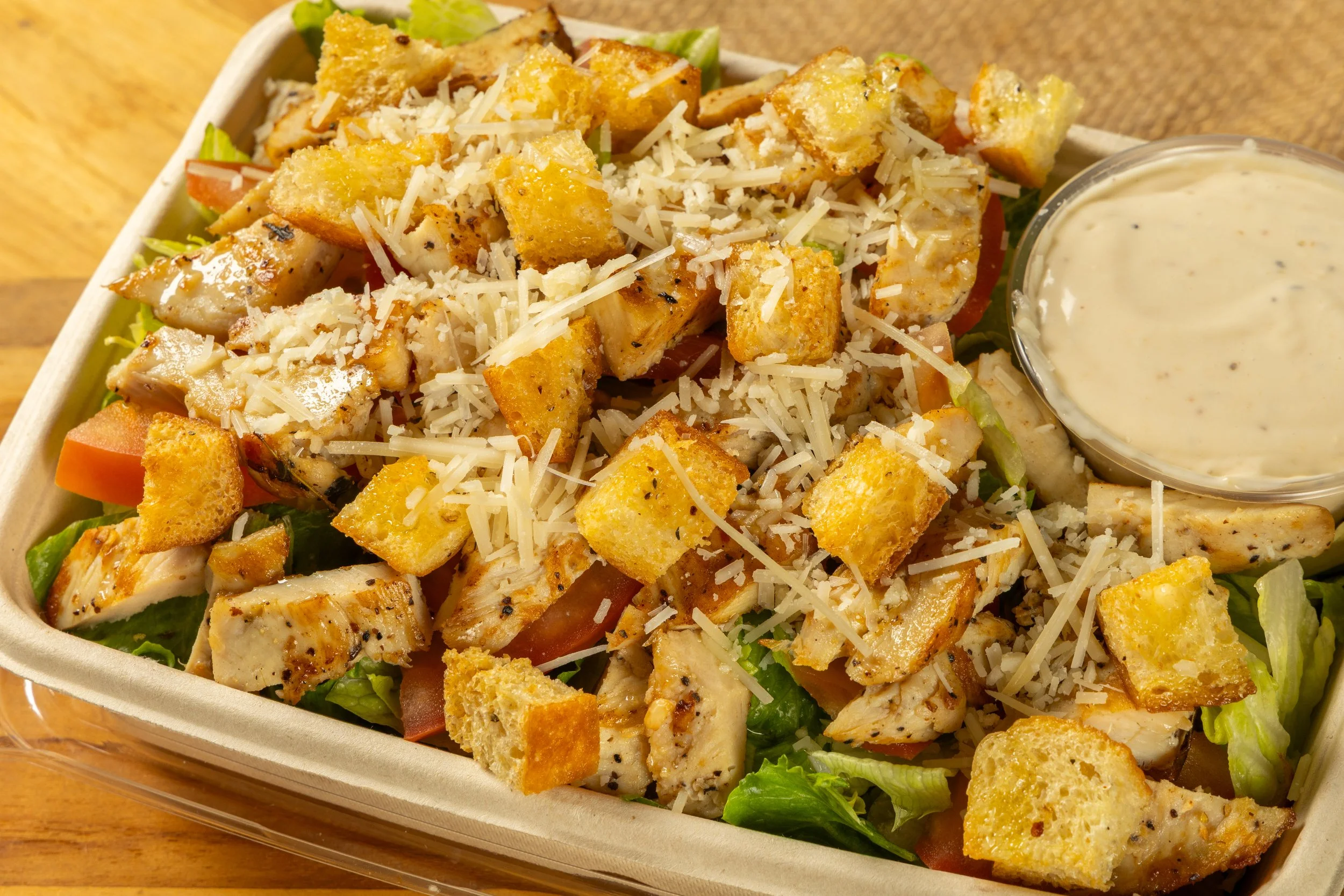 Romaine, Parmesan, tomatoes, homemade croutons, Caesar dressing